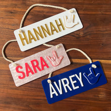 Personalize any bedroom or classroom with this Custom Acrylic Hanging Name Sign! Designed to hang on doors or walls, it features your name with a charming "I love you" handshape that adds a warm, inviting touch. Choose from three color combination options to create a unique sign that brightens the space and reflects your style. Perfect for making any room feel special and welcoming.