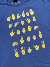 This Metallic Gold & Navy ASL ABC's Short Sleeve Tee is perfect for showing support for the Deaf community. The high-quality 100% cotton fabric ensures a comfortable, breathable fit. This navy tee showcases a stunning metallic gold ASL ABC design. Get yours today and show your love for ASL and the Deaf community. (Tee color: True Navy / Ink color: Metallic Gold)